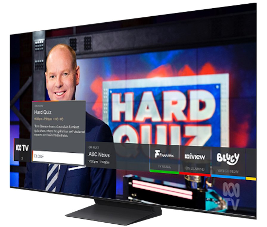 When your Freeview certified TV is connected to an aerial & broadband, Freeview automatically loads on your TV when you turn it on and the always-on mini guide will appear at the bottom of your screen, when you are in the Live TV environment of your TV. Using the direction keys & coloured buttons on your remote lets you navigate Freeview to access the enhanced TV Guide, search & discover shows from all of the channels in one easy to use place and provide quick access to your favourite Australian free to air channels & On Demand players.